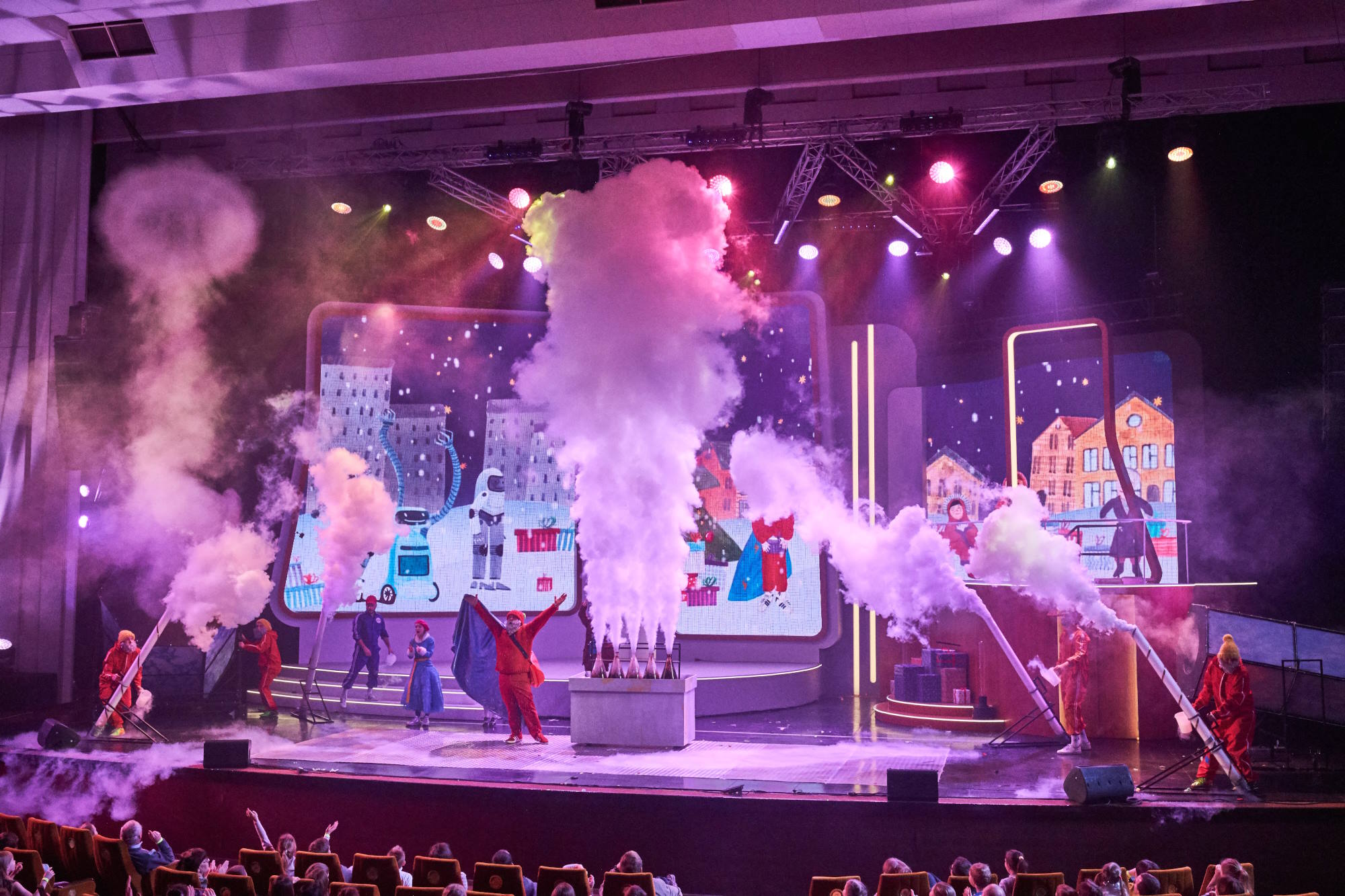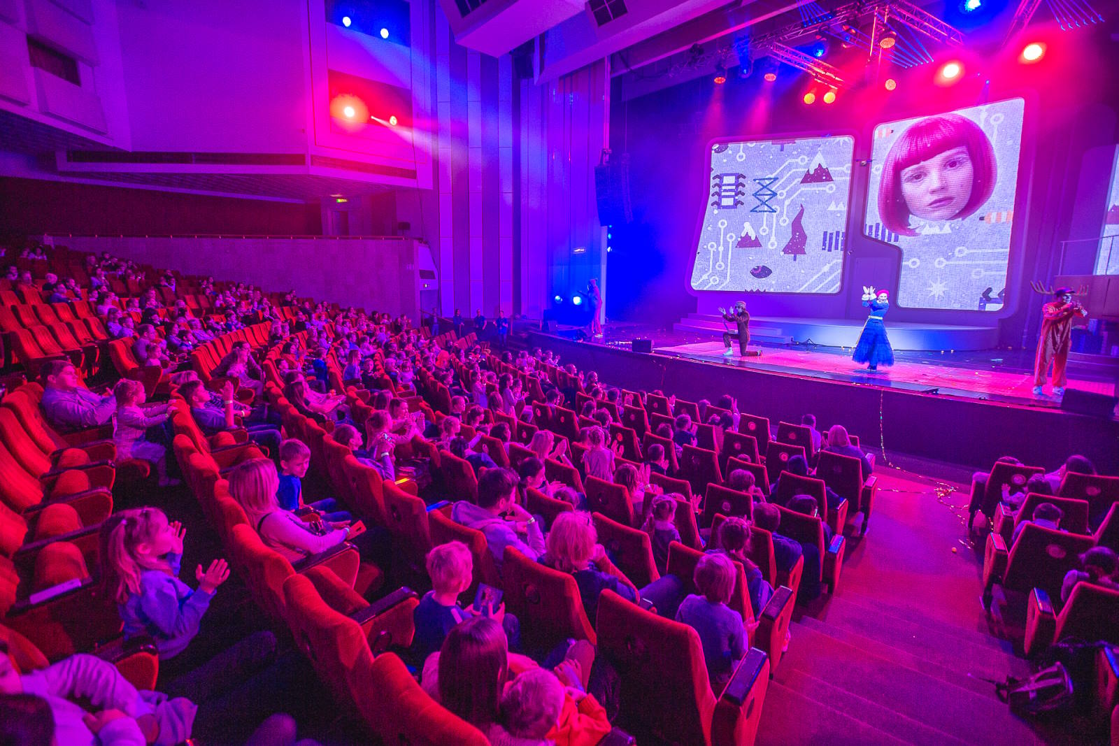 Мы считаем, что для маленьких гостей важно создать максимально комфортные условия на мероприятии. Поэтому мы проводим его в небольшом зале на 168 мест, а также приготовили удобные подушки на кресла, чтобы всем детям было хорошо видно сцену.