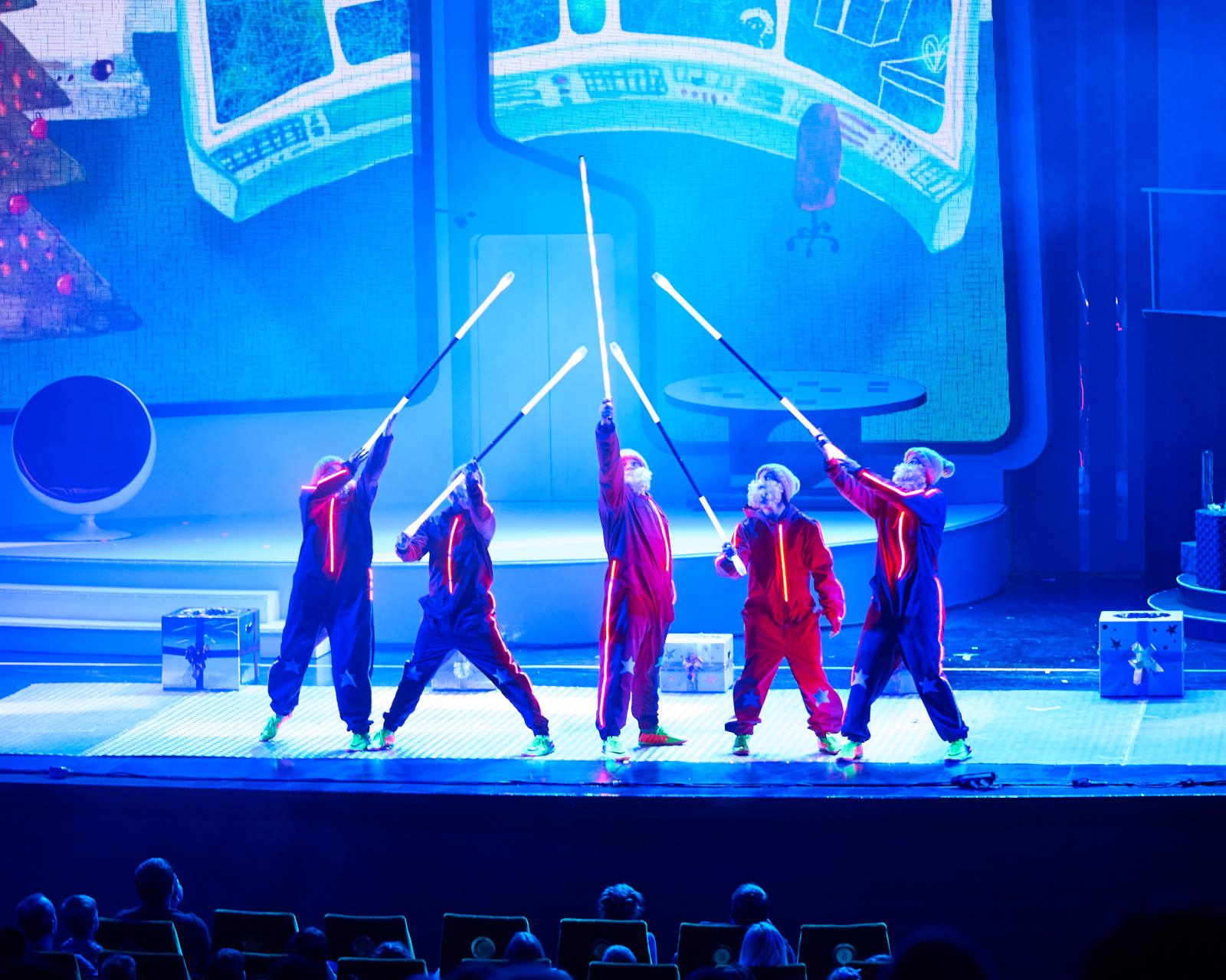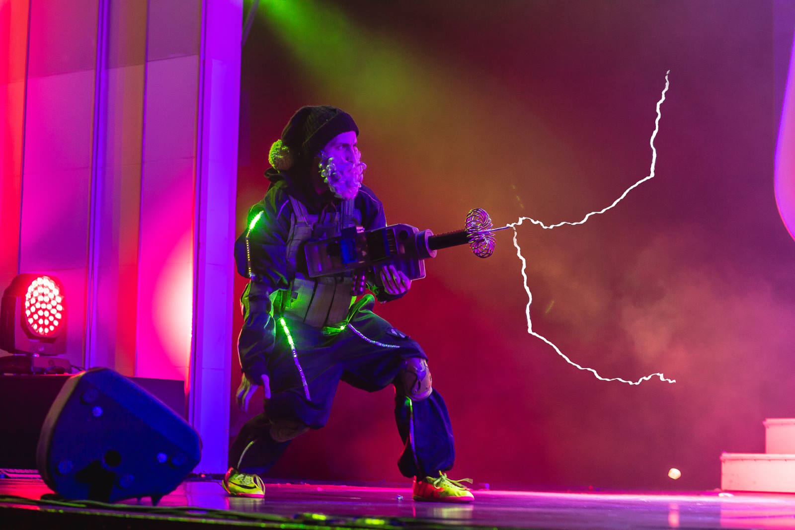 Все вокруг блестит и сверкает, огромные облака азота застилают всю сцену, а в зал летят сотни мыльных пузырей – у нас просто некогда скучать!